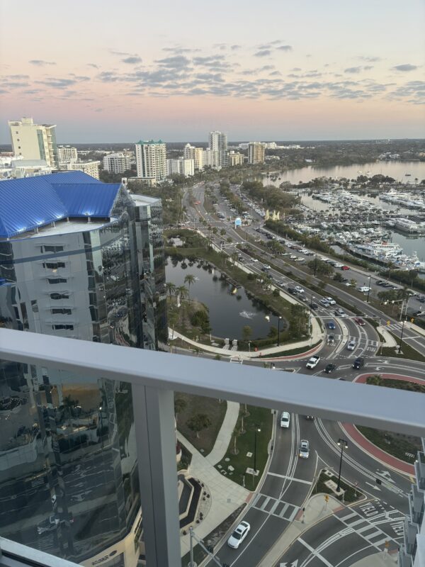 Sunset on the roof of the Downtown Westin Hotel.