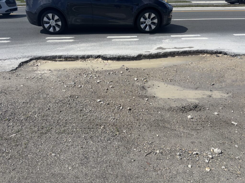 Pothole that took out our tire after dinner.
